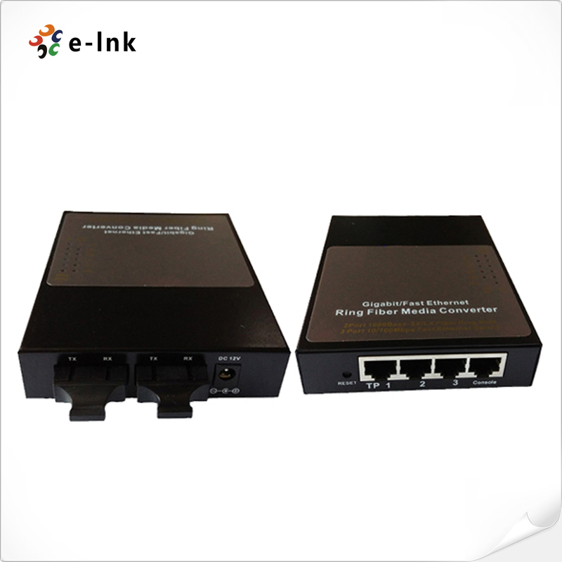 E-link LNK-R2300G series Ring type Media Converter được thiết kế để đáp ứng các yêu cầu của mạng truy cập đa sợi. Nó cung cấp 2 cổng sợi 1000BASE-SX/LX và 3 cổng 10/100/1000BASE-TX RJ45,và một cổng Console, cung cấp không chỉ kết nối mạng điểm đến điểm, mà còn chỉ đến mạng chuỗi đa điểm. It support WEB management and RSR (Rapid Super Ring) and has extend the transmission distance of a network from 100m over copper wires to 120Km (single-mode full duplex) and is applied to highway network system, hệ thống liên lạc mỏ và các mạng đa điểm chuỗi khác.