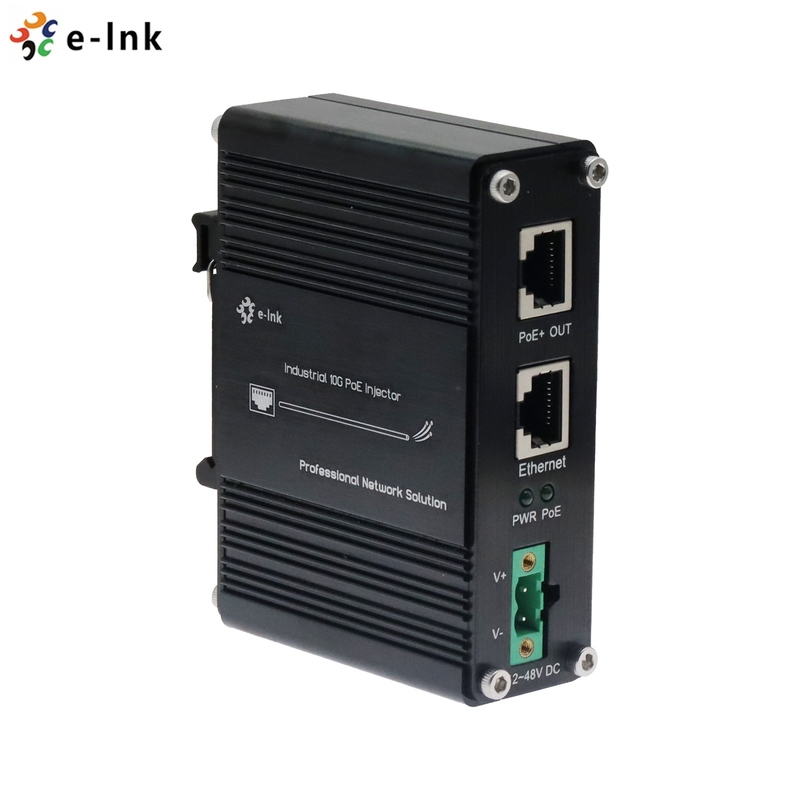 12~48V DC Power Input Industrial 10G PoE+ Injector